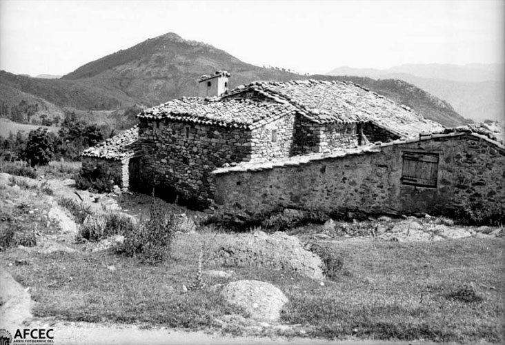 Masia del nucli de Les Costes, a Ogassa. 1939-1955. Antoni Maymó Duarte. Arxiu Fotogràfic Centre Excursionista de Catalunya - (Ampliar)