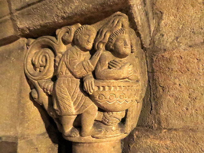 Absis de Sant Mateu. Capitell. Rèplica de corona, homenatge a Guifré el Pilós, fundador del monestir.