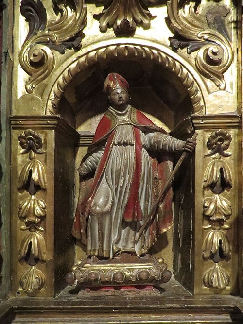 Sant Honorat. Detall de la figura central del retaule que li és dedicat. Fusta policromada. Segle XVIII
