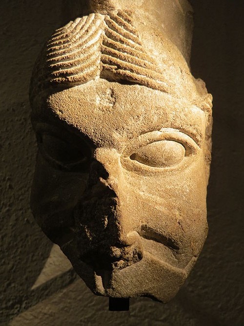 Fragment de capitell. Imatge d'una cara. Pedra. Segle XII