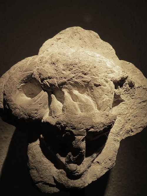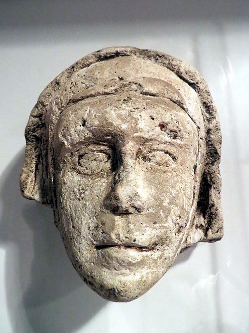 Fragment de capitell. Imatge d'una cara. Pedra. Segle XII - (Ampliar)