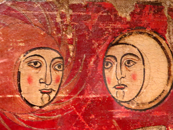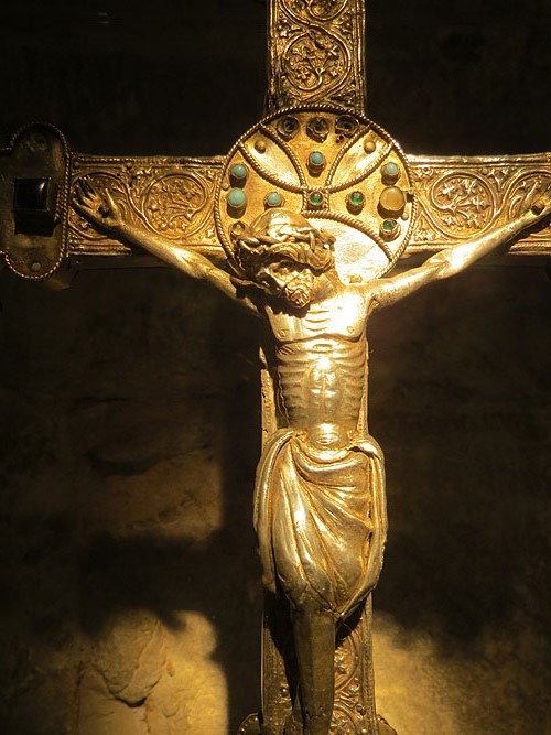 Creu. Detall. Segles XII-XIII. Fusta policromada. Prové de la desapareguda capella del Roser, de Sant Joan de les Abadesses