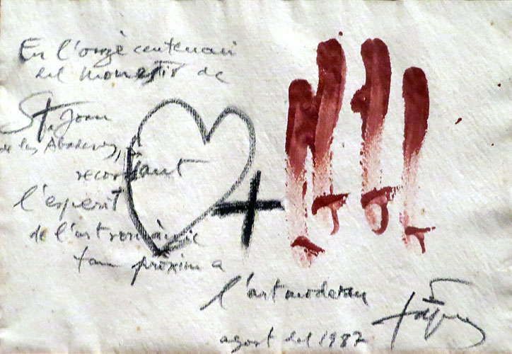 Homenatge al monestir amb motiu de l'onzè centenari. Antoni Tàpies. Tècnica mixta sobre paper. 1987