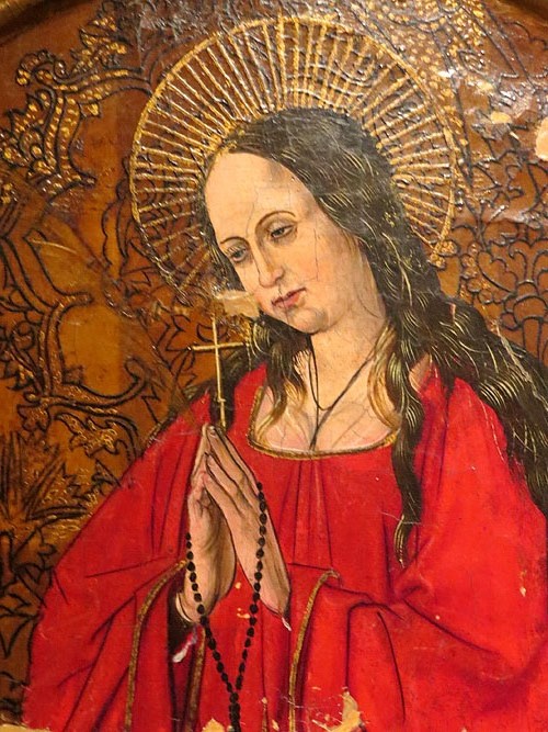 Imatge de la Mare de Déu. Talla de fusta policromada. Prové del carrer Isalguer. Segle XV - (Ampliar)