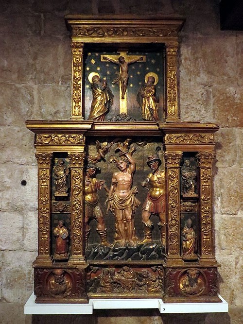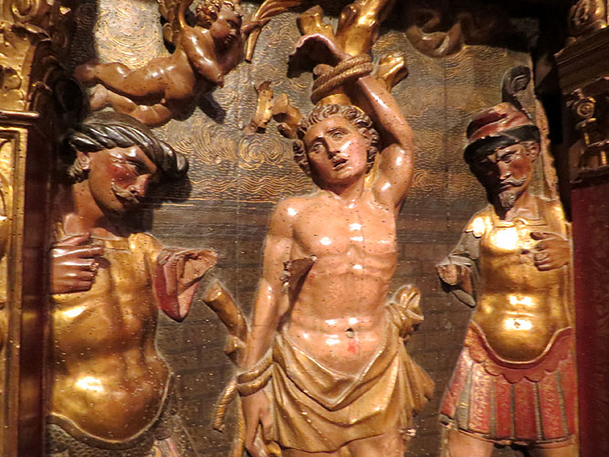 Retaule de Sant Sebastià. Detall. Fusta policromada. Segle XVI. 220 x 145 x 23,5 cm