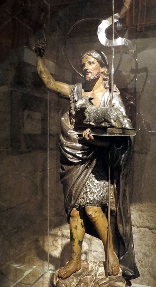 Imatge de Sant Joan Baptista. Obra de l'argenter barceloní Joan Angeli. Argent policromat. 1920