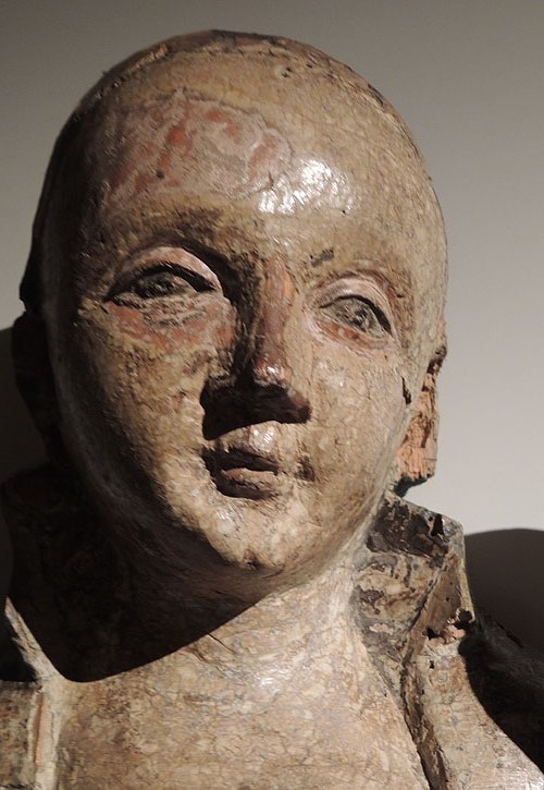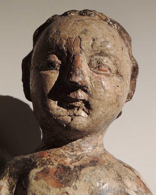 Imatge de la Mare de Déu. Detall. Talla de fusta policromada. Prové del carrer Isalguer. Segle XV - (Ampliar)