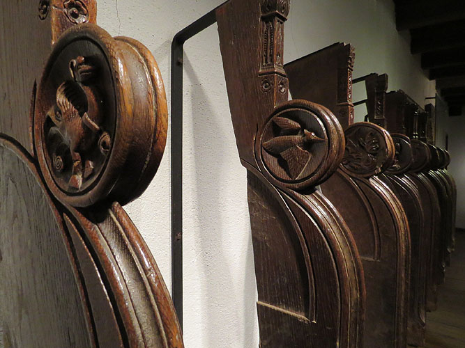 Braços del cadirat del cor de la col·legiata. Segle XVI. Fusta de roure