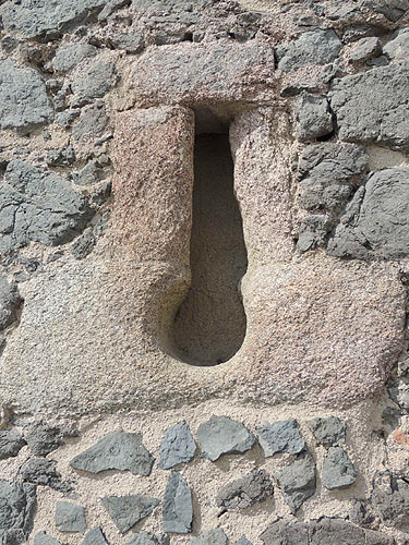 El 1191 el castell va passar a ser possessió novament del rei, recuperant-lo el vescomte de Cabrera al cap de tres anys. Aquest, a canvi, no hi podia fer obres sense permís reial. El 1306, Ponç Hug, comte d’Empúries i vescomte de Cabrera, va fer obres al castell sense atenir-se a la reial ordre, motiu pel qual el rei Jaume II ordenà l’enderrocament de la fortificació, que no es va portar a terme gràcies a la petició d’indult de la reina Blanca d'Anjou. ![]() Castell d'Hostalric. Fossat del castell. - (Ampliar)