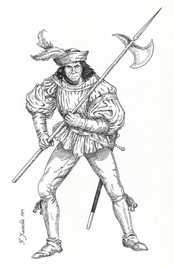 Soldat d'infanteria de les tropes del Principat durant la guerra civil catalana (1462-1472). Dibuix de Fèlix Xunclà. - (Ampliar)
