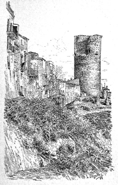 La Torre dels Frares. Gravat de Lluís Urgellés. CRDI Ajuntament de Girona. - (Ampliar)