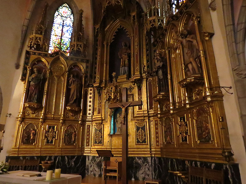 (4) Constava de 24 quadres: deu dedicats a la Passió de Crist, els quatre plafons del centre mostraven la vida de Sant Esteve, i en el laterals hi havia un quadre de Sant Pere, un de Sant Joan Baptista i vuit imatges d'apòstols, bisbes i sants. Una escultura de Sant Esteve, de poc valor artístic, formava part del retaule. Bibliografia