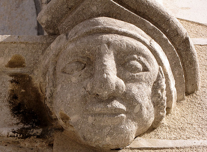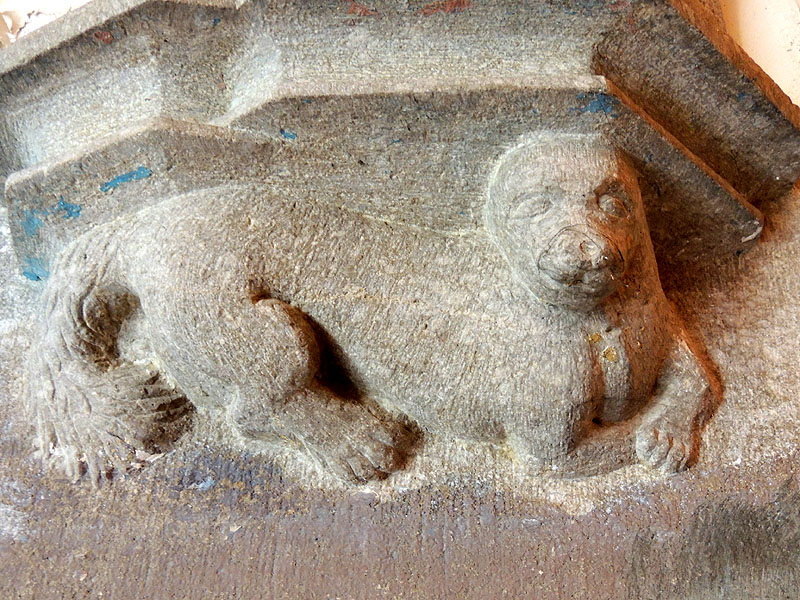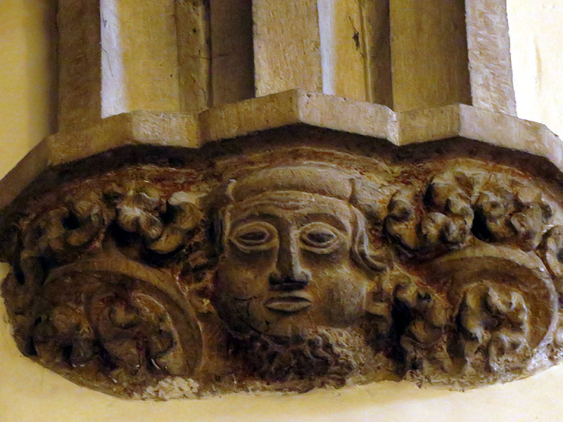 Un dels relleus amb figures zoomòrfiques a la porta de l'església de Sant Esteve - (Ampliar)