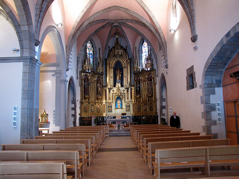 Iniciada el 1500 i acabada el 1565, dins un estil gòtic ja molt tardà. El 1527 ja existia un edifici amb quatre altars, dedicats a Sant Esteve, Santa Maria, Sant Miquel i Sant Sebastià, i entre 1545 i 1551 es va construir el cor i les escales. El 1565 es v acabar el retaule major de Sant Esteve. Consta d'una sola nau amb capelles laterals als dos costats, coberta amb volta de creueria, capçada amb un absis poligonal de tres bandes amb finestrals gòtics i reforçada amb contraforts exteriors. ![]() Interior de la nau de l'església - (Ampliar) Les intervencions posteriors.