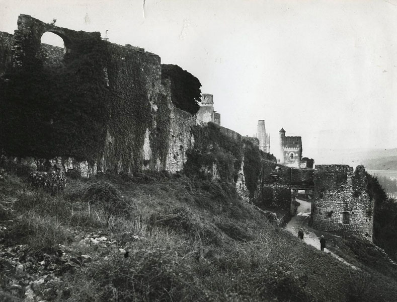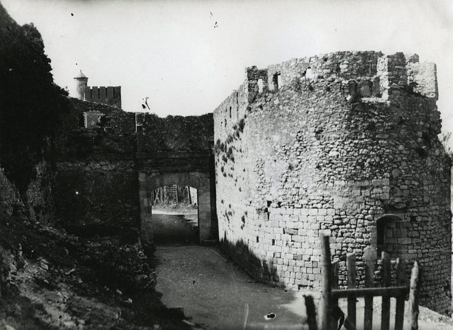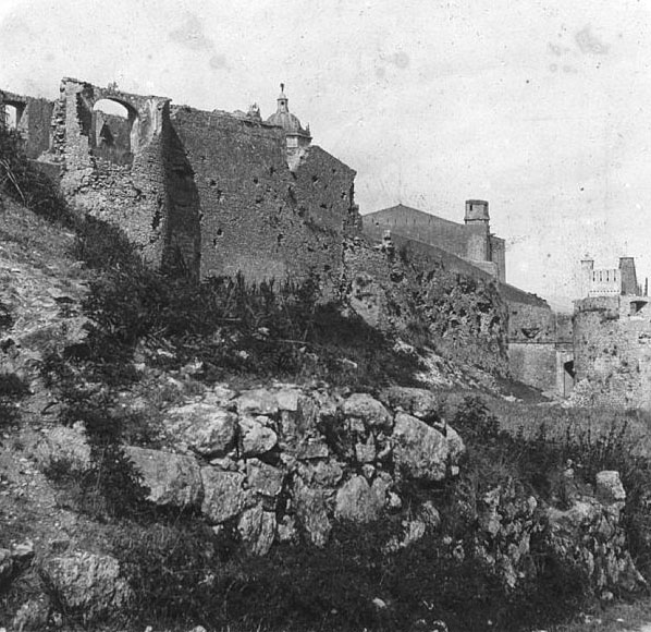 (Ampliar) - Vista del Portal de Sant Cristòfol. Darrere el mur sobresurt la Torre Magdala. Autor Fargnoli. Fons Ajuntament de Girona.