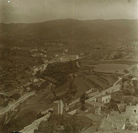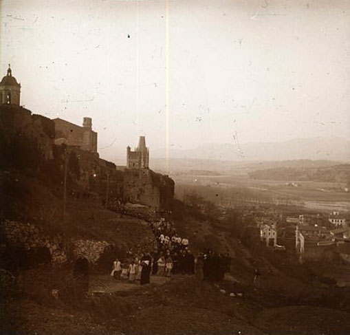 (Ampliar) - Vista des del fort de Sant Cristòfol, amb la Torre Magdala. Autor desconegut. Col·lecció Ajuntament de Girona. |