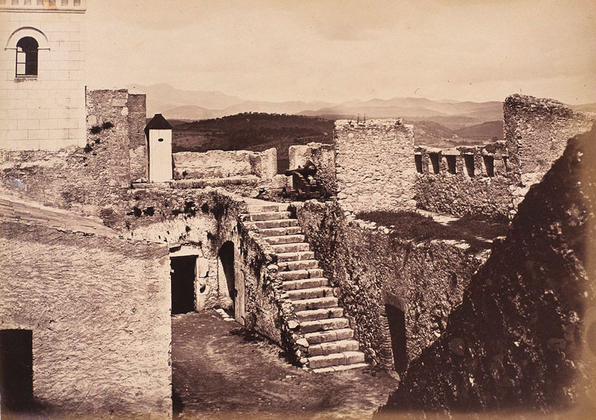 (Ampliar) - Vista del fort de Sant Cristòfol. A l'esquerra, la Torre Magdala. Autor Joan Martí Centelles. Col·lecció Ajuntament de Girona.