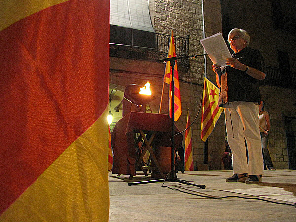 10 de setembre 2010. La plaça del Vi. Lectura del manifest per Montserrat Pumarola