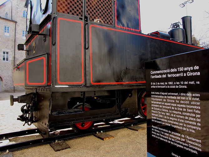 Inicialment ubicada a la plaça d'Espanya de Girona, davant l'estació de RENFE, dsprés d'una restauració duta a terme Associació Amics del Ferrocarril de les Comarques Gironines, després de patir un incendi, ha estat trasllada i dipositada provisionalment, amb motiu de la commemoració dels 150 anys de l'arribada del tren a Girona, al passatge Emili Blanch, just a la part posterior de l’antic edifici d’Hisenda i a tocar de la seu de la Generalitat.