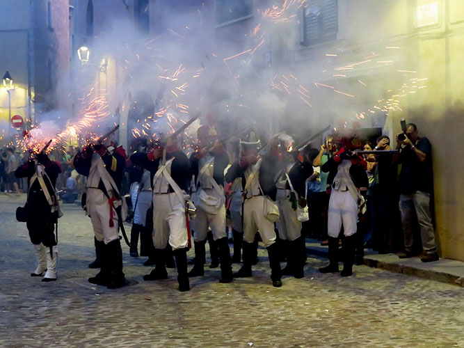 Dins els actes de la "VII Festa Reviu els Setges Napoleònics", el dissabte 20 de setembre 2014, a la tarda, es van presentar les unitats participants a la plaça de Sant Domènec, i es va iniciar la recreació dels setges.