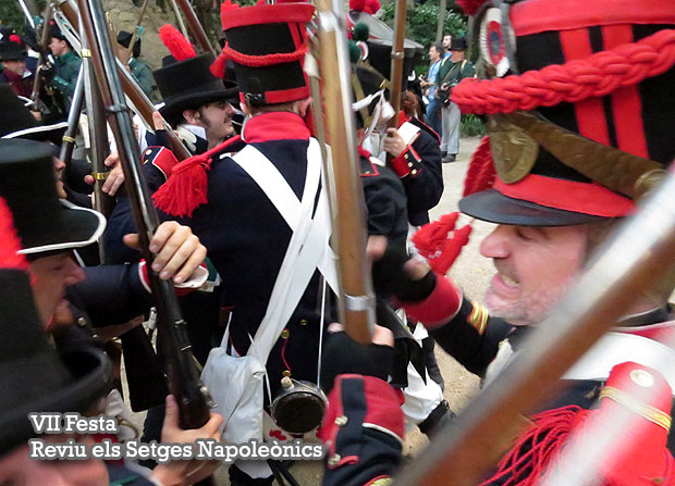 Dins els actes de la "VII Festa Reviu els Setges Napoleònics", el dissabte 20 de setembre 2014, a la tarda, es van presentar les unitats participants a la plaça de Sant Domènec, i es va iniciar la recreació dels setges.